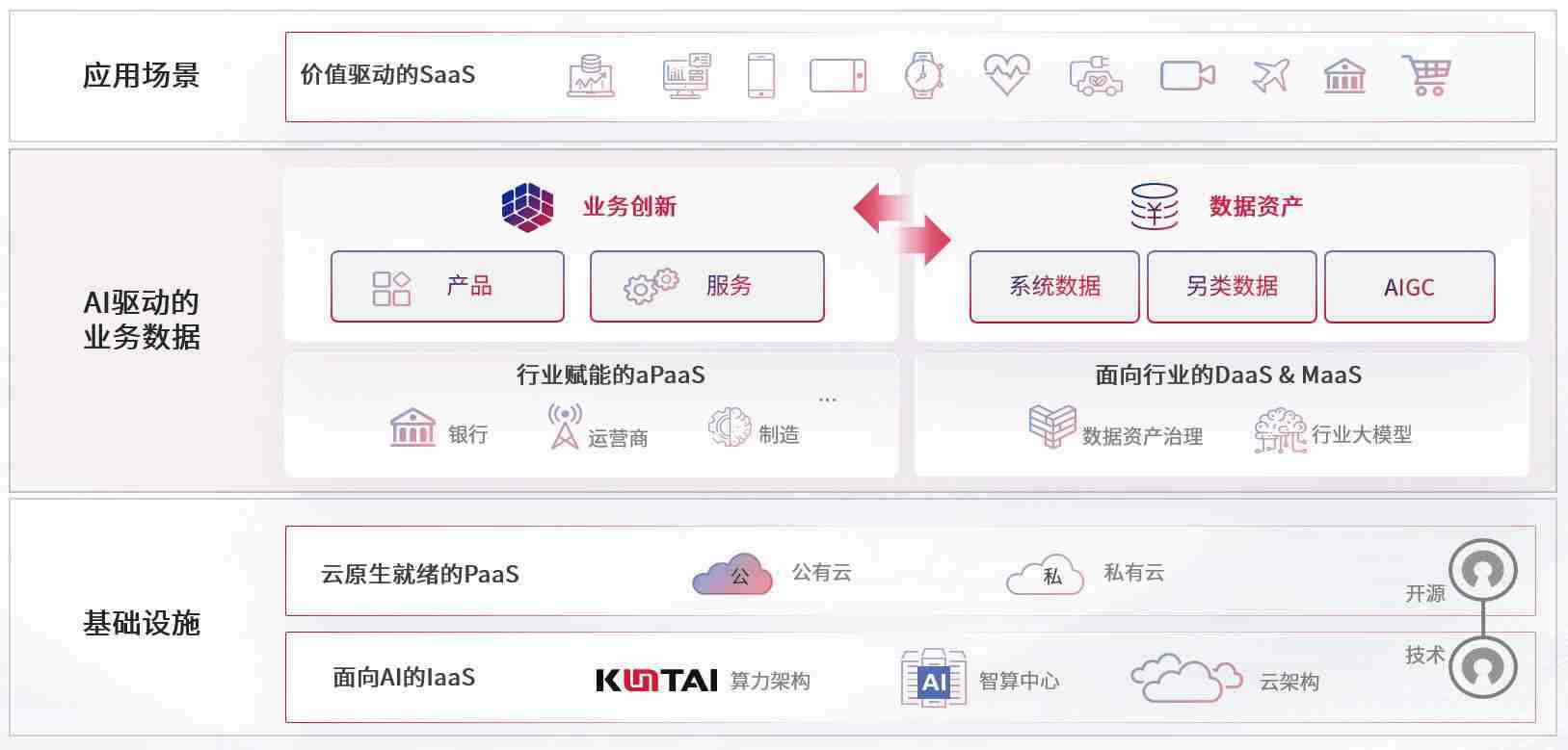数字时代,,,围绕企业数字化转型的关键要素,,NG28数码开创性的提出数云融合战略和技术体系框架,,,,着力在云原生、、、数字原生、、、AI原生和信创产业上架构产品和服务能力,,为处在不同数字化转型阶段的快消零售、、汽车、、、金融、、、、医疗、、、政企、、、、教育、、、、运营商等行业客户提供泛在的敏捷IT能力和融合的数据驱动能力,,构建跨界融合创新的数字业务场景和新业务模式,,,,助力企业级客户建立面向未来的核心能力和竞争优势,,全面推动社会的数字化、、、智能化转型升级。。。